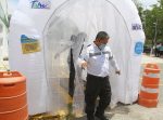 Ciudad Victoria Tamaulipas, 10 de mayo de 2020.-Para prevenir el riesgo de contagio de Coronavirus (COVID-19), se instaló un túnel sanitizante en las instalaciones de la Dirección de Seguridad Tránsito y Vialidad, esto es parte de las acciones que realiza el Gobierno de Victoria, para proteger la salud del personal y de los ciudadanos que acudan a realizar algún trámite.