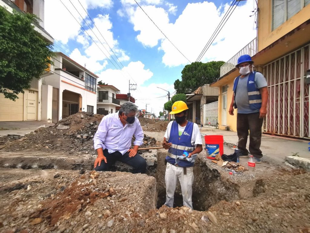 Ciudad Victoria Tamaulipas, 5 de junio de 2020.- El alcalde Xicoténcatl González Uresti, supervisó las obras que el Gobierno del Estado de Tamaulipas y el Gobierno de Victoria, realizan en diversos puntos de la Zona Centro de Victoria, como el cambio de tubería nueva; con la que se tendrá una mejor eficiencia en la distribución de agua potable.