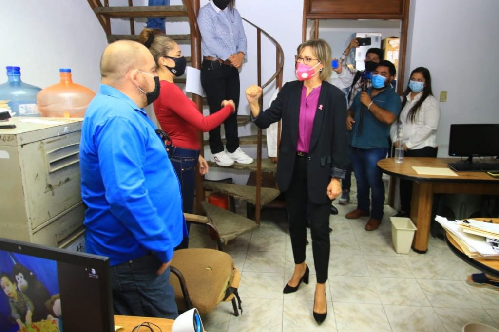 Ciudad Victoria, Tamaulipas, (5 de octubre de 2020).- En un ejercicio que imprime el sello de lo que será su administración, la Presidenta Municipal de Victoria, Pilar Gómez, realizó un recorrido por cada una de las áreas de la sede del Ayuntamiento, donde se presentó con los trabajadores que las integran, a los cuales les aseguró que “mientras esté en mi oficina, la puerta siempre estará abierta para ustedes y para los victorenses”.