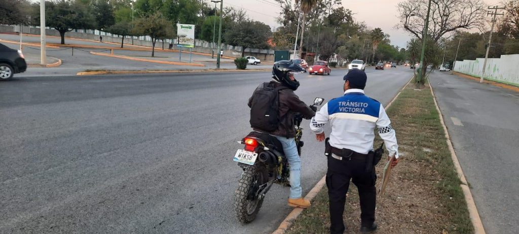 Ciudad Victoria, Tamaulipas (30 de enero de 2021).- La Dirección de Tránsito de Victoria inició en coordinación con la Policía Estatal un operativo denominado “Moto Segura”, en el que se orienta a los motociclistas en el uso correcto del casco protector y la prevención de accidentes.
