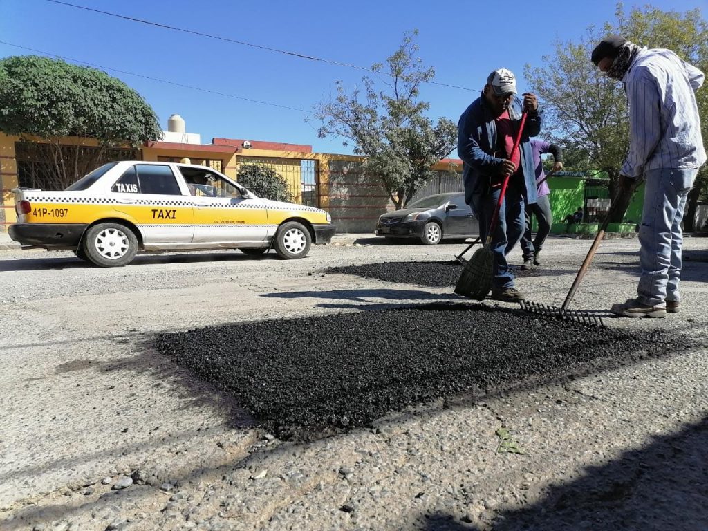 Cd. Victoria. – Avanza la Cuarta Transformación en Ciudad Victoria, el programa cien días de bacheo despliega su cobertura de restauración de pavimentos dañados en vialidades primarias y secundarias de la capital tamaulipeca.