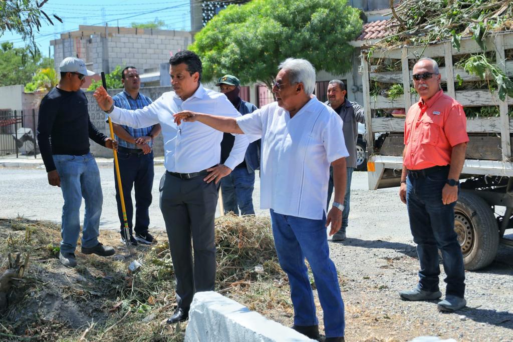 A temprana hora, cuadrillas de trabajadores del área de Servicios Públicos iniciaron labores de chapoleo, barrido de banquetas, retiro de maleza y pinta de cordones en un primer tramo de esta importante vialidad y calles laterales de acceso a la colonia México.
