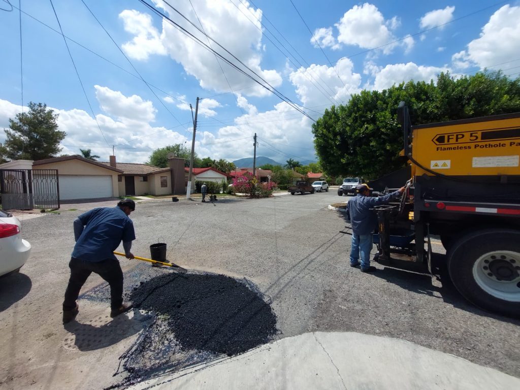 Bacheo y tendido de material se realizó en más de 3 mil m2 de calles de las colonias; Esperanza, Obrera, Libertad, Del Maestro, El Mirador, Ampliación Industrial, Echeverría y Chapultepec, además en los fraccionamientos Los Arcos y Privada Villarreal.