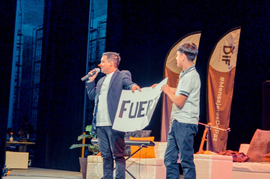 El emotivo mensaje, fue secundado por alcalde Eduardo Gattás Báez al exhortar a los jóvenes a “luchar por sus sueños y objetivos”, así como por el payasito Charly que impartió la conferencia Metamorfosis ante representantes de DIF Tamaulipas, SET, CODHET e ITCA.