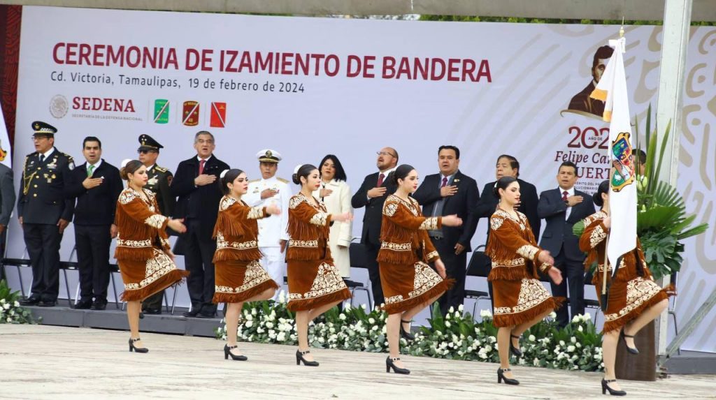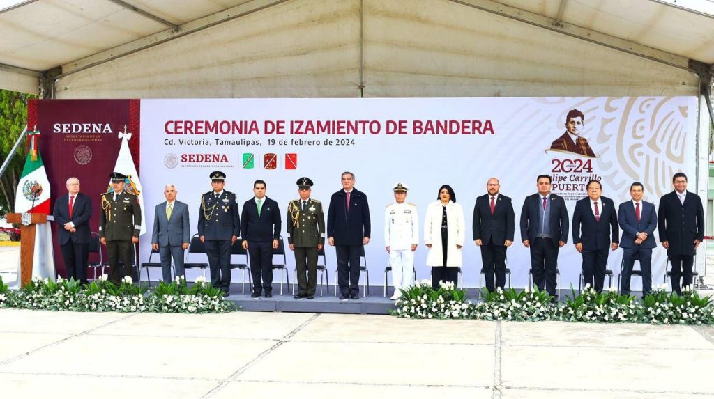 En el acto cívico, celebrado en las instalaciones del 77 Batallón de Infantería, participó junto al General Julio César Islas Sánchez, comandante de la 48a Zona Militar, y funcionarios de los tres niveles de gobierno en el izamiento de la Bandera de México.