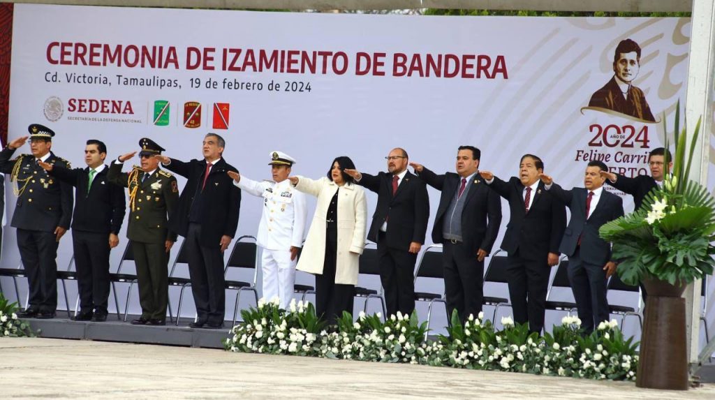 Cd. Victoria, Tamps., 19 de febrero 2024. – El presidente municipal de Victoria, Eduardo Gattás Báez, asistió este lunes a la ceremonia de conmemoración del 111 aniversario del Ejercito Mexicano, presidida por el gobernador del Estado Américo Villarreal Anaya.