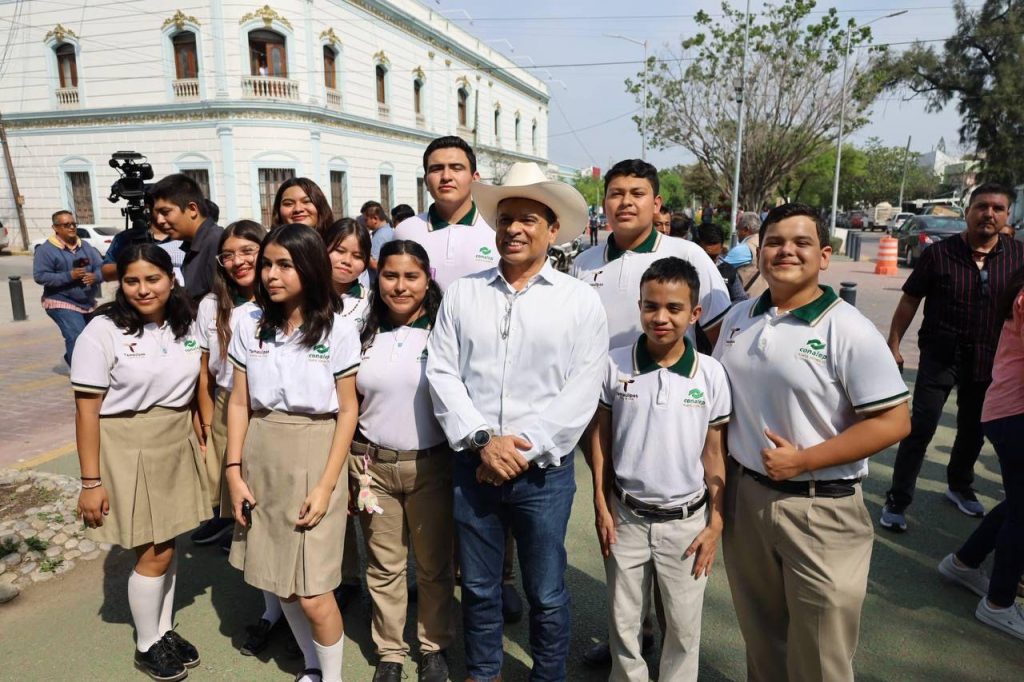 Cd. Victoria, Tamps., 29 de febrero. – El presidente municipal de Victoria, Eduardo Gattás Báez, en compañía de alumnos del CONALEP e integrantes de la Asociación Civil Tonantzin Tlalli, dio inicio a la campaña de reforestación 2024 en la avenida 17 Francisco I. Madero.