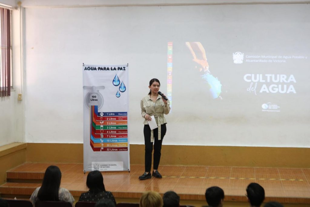 Cd. Victoria. – Por ser un elemento vital para la salud y consumo humano, personal de la Comisión Municipal de Agua Potable y Alcantarillado de Victoria imparte el taller “Educando, Agua para la Paz” en instituciones educativas y sector empresarial para concientizar sobre su uso y cuidado.