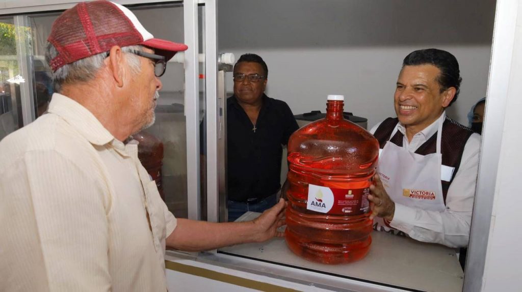 Cd. Victoria, Tamps., 11 de abril. – El segundo centro de Abastecimiento Municipal de Agua y Alimentos –AMA-, que suministrará agua purificada y gratuita a más de 350 familias del sector poniente de Victoria, fue inaugurado este jueves por colonos y autoridades municipales.