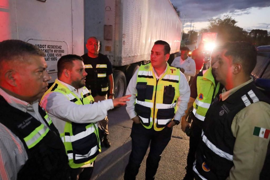 En compañía de personal operativo, Mario Alberto Victoria Cárdenas, Subdirector de Atención de Emergencias de la Coordinación Nacional de Protección Civil, Luis Gerardo González de la Fuente y Juan José Perales Jaramillo, de PC Estatal y Municipal, inspeccionaron los drenes del Eje Vial, Avenida La Paz y de desemboque del boulevard Praxedis Balboa al río San Marcos.
