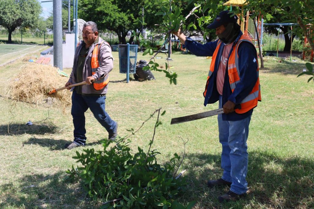 Cuadrillas de Parques y Jardines llevaron a cabo las mismas acciones en plazas públicas de la zona centro, además de atender reportes ciudadanos en áreas verdes de las colonias Mariano Matamoros, Manuel A. Ravize y América de Juárez.