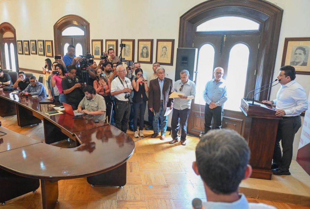 Acompañado de los titulares de la Secretaría de Obras Públicas, Servicios Públicos, Comisión Municipal de Agua Potable y Alcantarillado y Coordinación de Protección Civil del Municipio, informó de los trabajos y atención de reportes ciudadanos realizados por el Gobierno Municipal del 24 de agosto al 8 de septiembre.