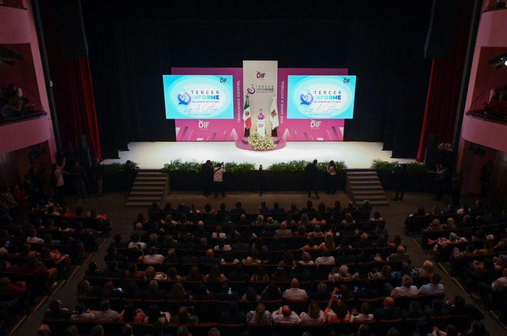 Cd. Victoria, 11 de septiembre 2024. – Con sueños hechos realidad y el compromiso de seguir transformando a Victoria de la mano de la sociedad por tres años más, la Presidenta del Sistema DIF Lucy Rodríguez de Gattás presentó su Tercer Informe de Actividades ante integrantes del patronato, voluntariado y familias victorenses.