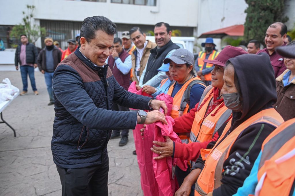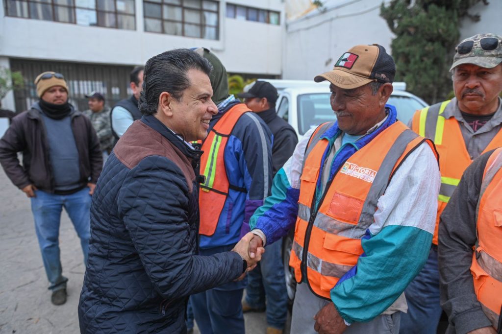 En la explanada de la presidencia municipal de Victoria, el alcalde hizo entrega de 3 camionetas estaquitas, 12 desbrozadoras y 50 impermeables, a los departamentos de Barrido Manual, Parques y Jardines y Servicios Complementarios.