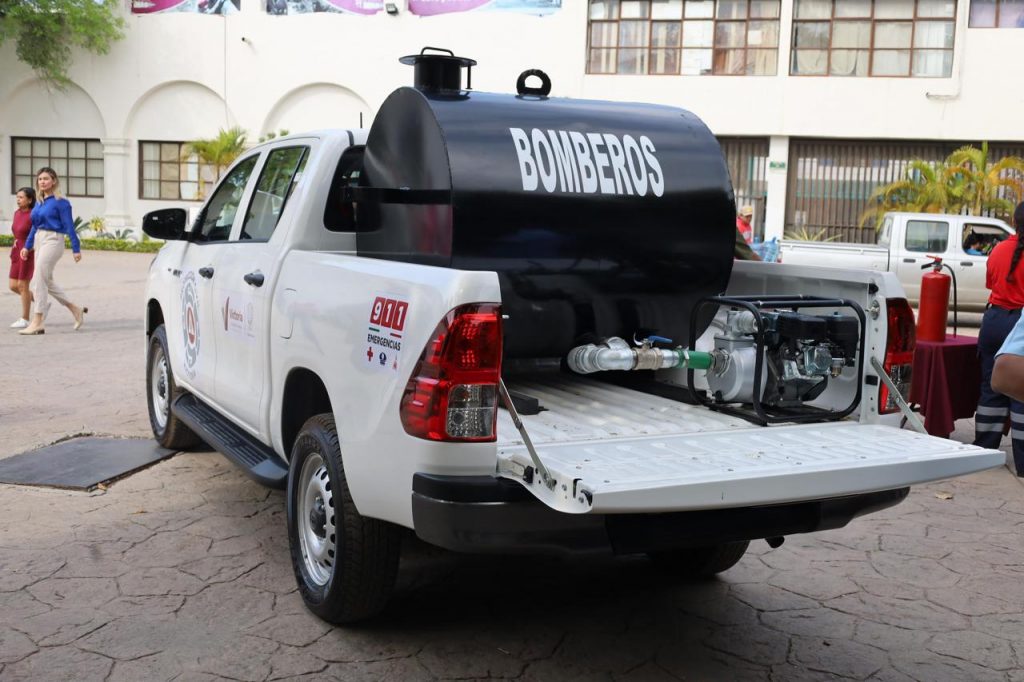 Con el vehículo dotado de un tanque de 830 litros de agua y bomba de 5.5 hp, dos extintores de polvo químico seco y manguera de 30 metros se dará atención oportuna a la población en quema de vehículos, pastizales, fugas de gas y derrame de líquidos peligrosos.