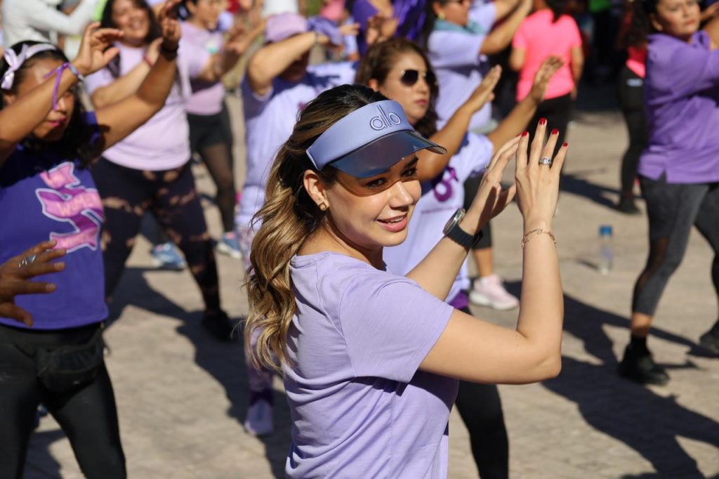 La actividad con causa, organizada por el Departamento de Deportes del Municipio, se llevó a cabo en la explanada del Paseo Méndez, con la participación de instructores y grupos de zumba portando la playera alusiva con la frase impresa «Juntas Somos Más Fuertes».