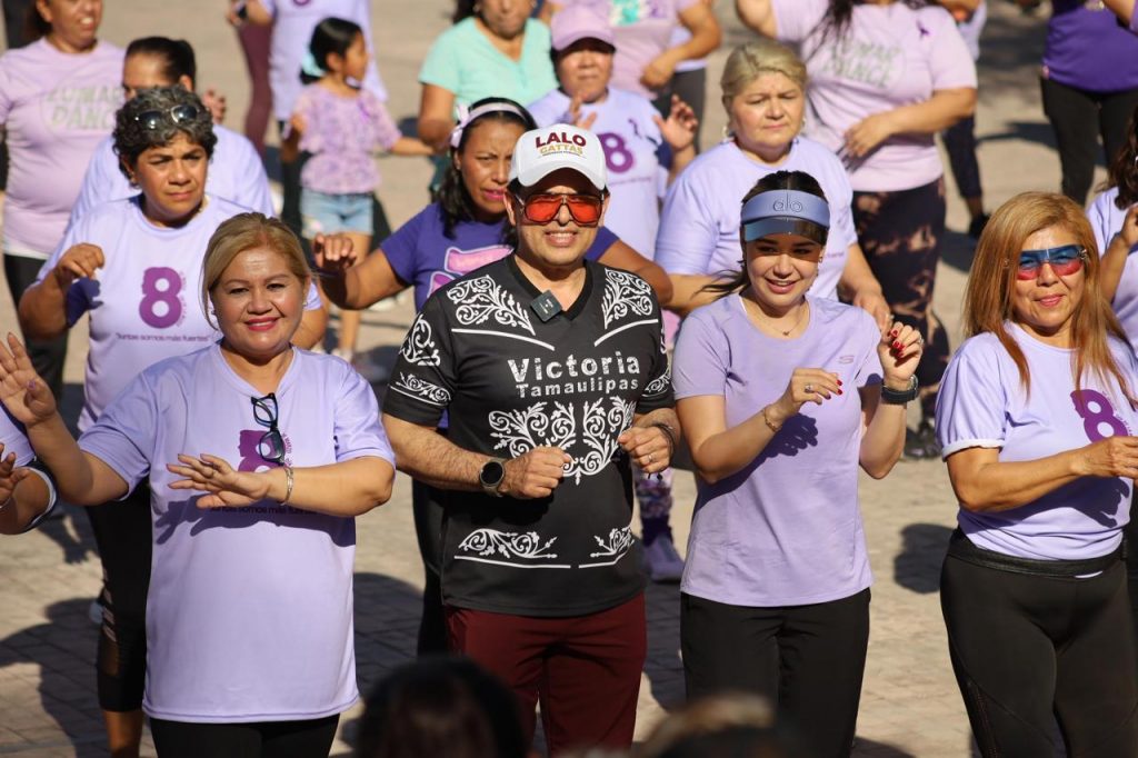 Cd. Victoria, 8 de Marzo 2025. – Con ritmo y energía, más de 200 mujeres celebraron con un Zumbaton el Día Internacional de la Mujer que se conmemora este 8 de marzo, evento que fue encabezado por el presidente municipal de Victoria Eduardo Gattás Báez y su esposa Lucy Rodríguez de Gattás.