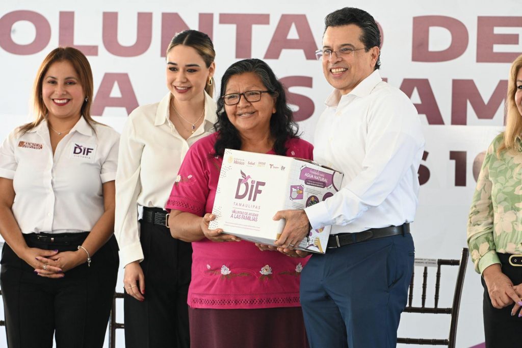 En la entrega de 3072 apoyos realizada en las instalaciones del DIF Victoria, participaron la titular del voluntariado militar de la 48 Zona Sra. Edna Rocío García García, síndicos, regidores del cabildo y secretarios de la administración municipal.