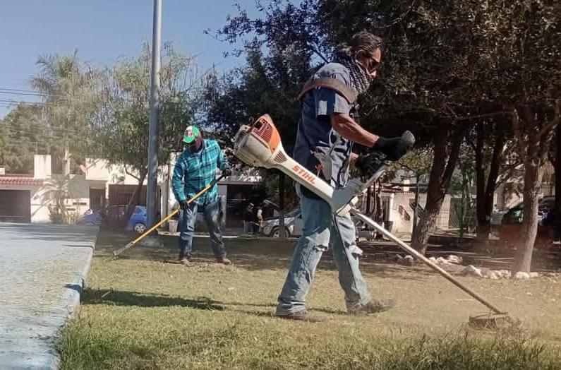 La Secretaría de Servicios Públicos desplegó 12 cuadrillas equipadas con herramienta de jardinería para mejorar 36 áreas verdes, espacios públicos y camellones en 24 colonias con trabajos de chapoleo, poda, pinta de juegos infantiles, guarniciones y revisión de luminarias de la red de alumbrado público.