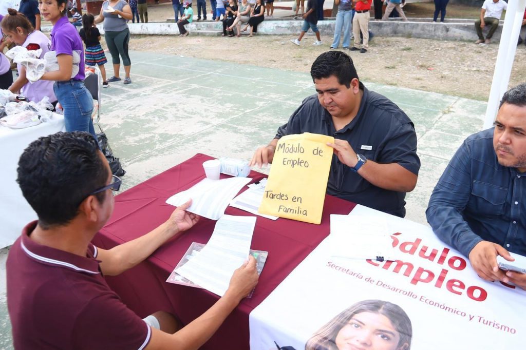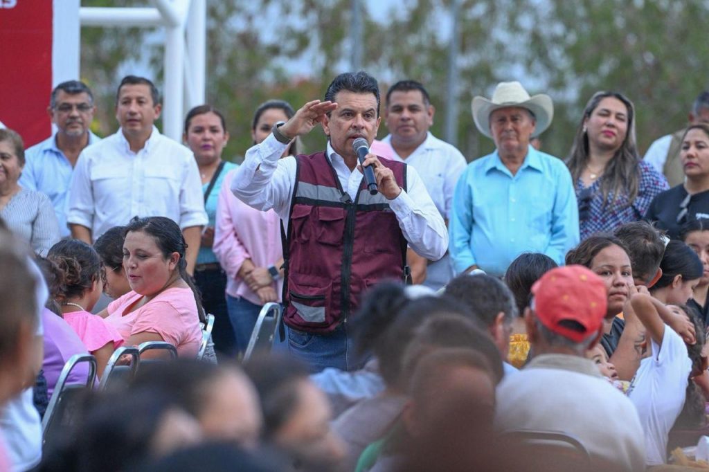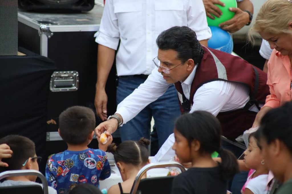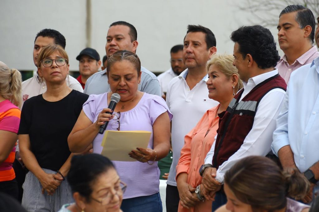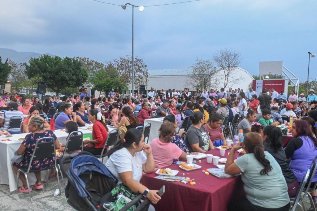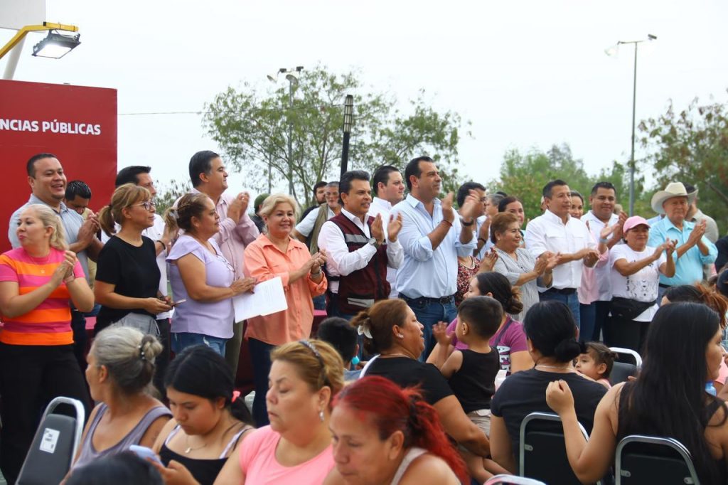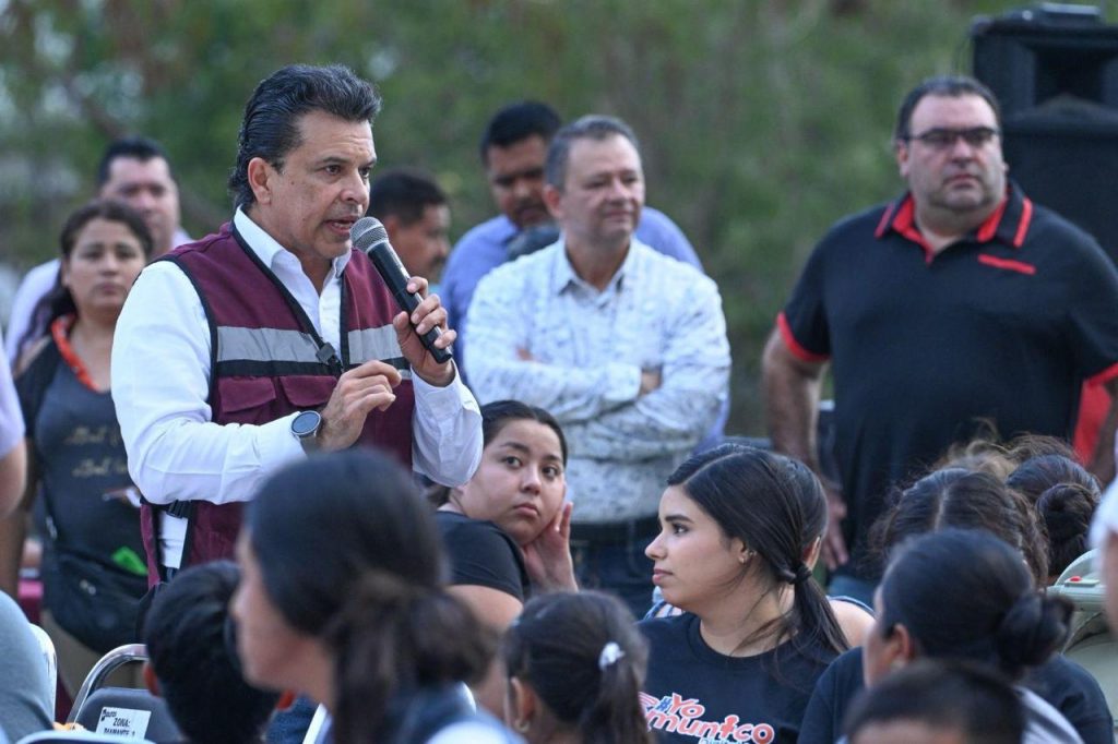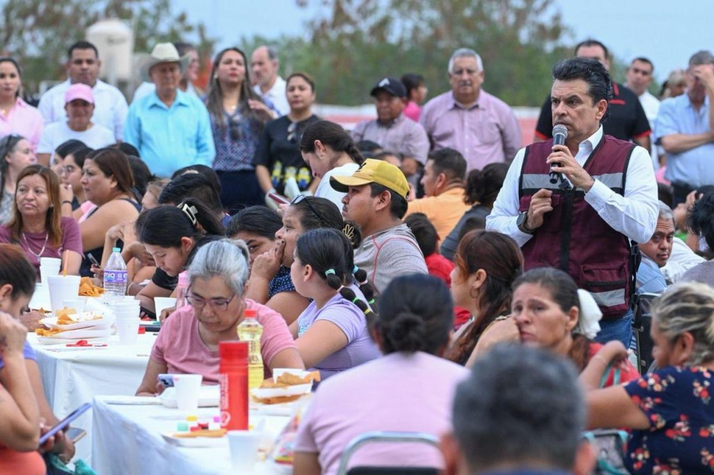 Acompañado de integrantes del Gabinete y Cabildo Municipal, arribó al área deportiva del sector donde fue recibido por más de 400 mujeres, jefes de familia, jóvenes y niños con los que compartió bocadillos, bebidas de sabor, helados, juego de lotería, la rifa de tinacos y atención personalizada en la mesa de audiencia pública.
