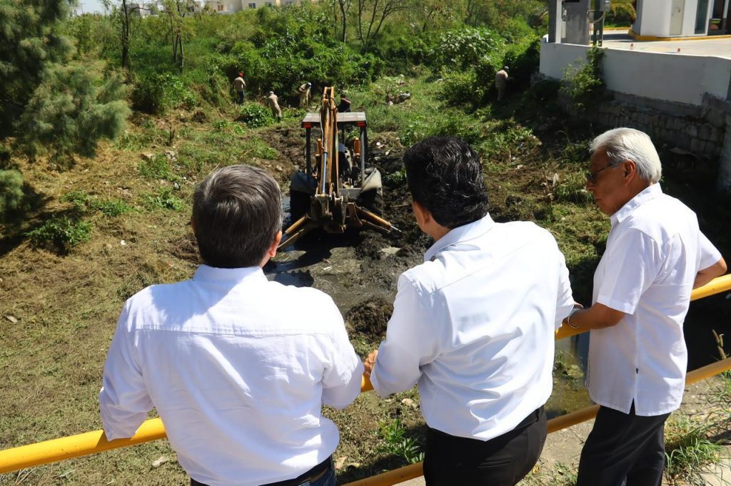 En compañía del gerente general de la Comisión Municipal de Agua Potable y Alcantarillado (COMAPA) Fernando García Fuentes, acudió al dren pluvial FOVISSSTE donde se realizaron trabajos de limpieza y desazolve en los últimos 200 metros de dicho dren.