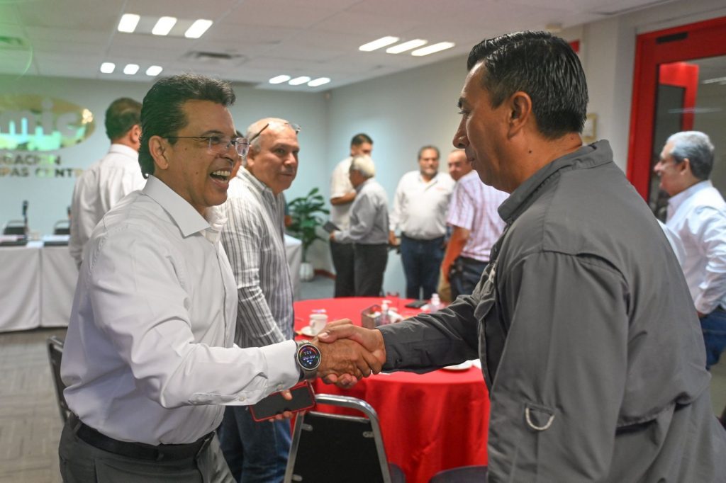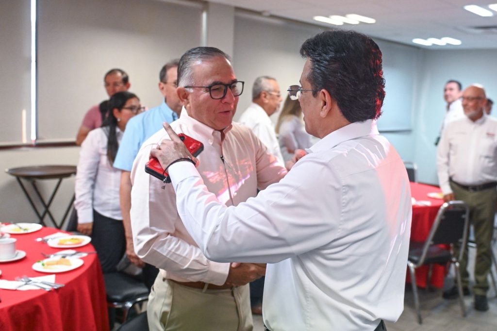 En la reunión de trabajo, celebrada en el auditorio de la delegación local, agradeció la apertura y compromiso de las y los empresarios del sector de la construcción, de sumarse a la ruta de la transformación que tiene como prioridad mejorar la vida de los victorenses con mejores calles, escuelas y parques en las colonias.