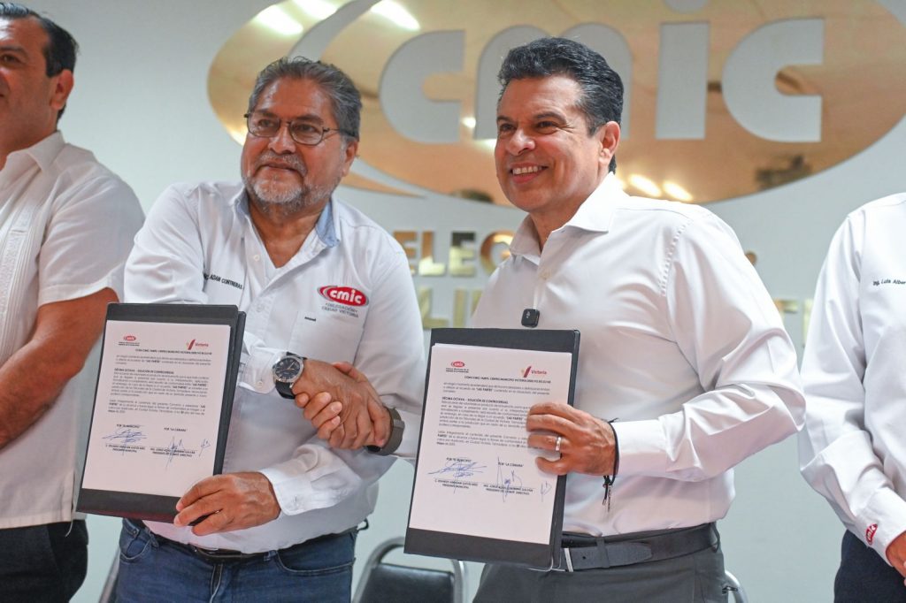 Cd. Victoria, 20 de mayo 2025. – Al presentar el Programa de Obra 2025 para Victoria, el presidente municipal Eduardo Gattás Báez, firmó con la Cámara Mexicana de la Industria de la Construcción (CMIC) el convenio de colaboración para fortalecer la vinculación institucional y dar certeza a cada peso que se invierta en infraestructura urbana y rural en la Capital de Tamaulipas.
