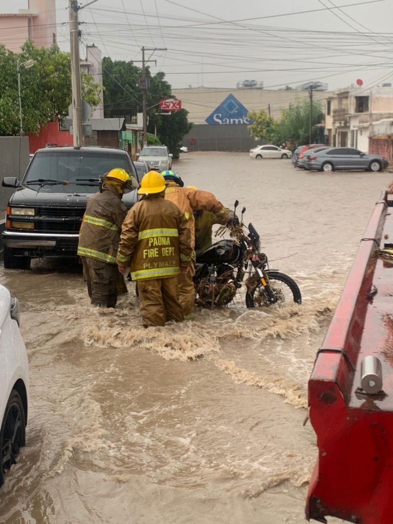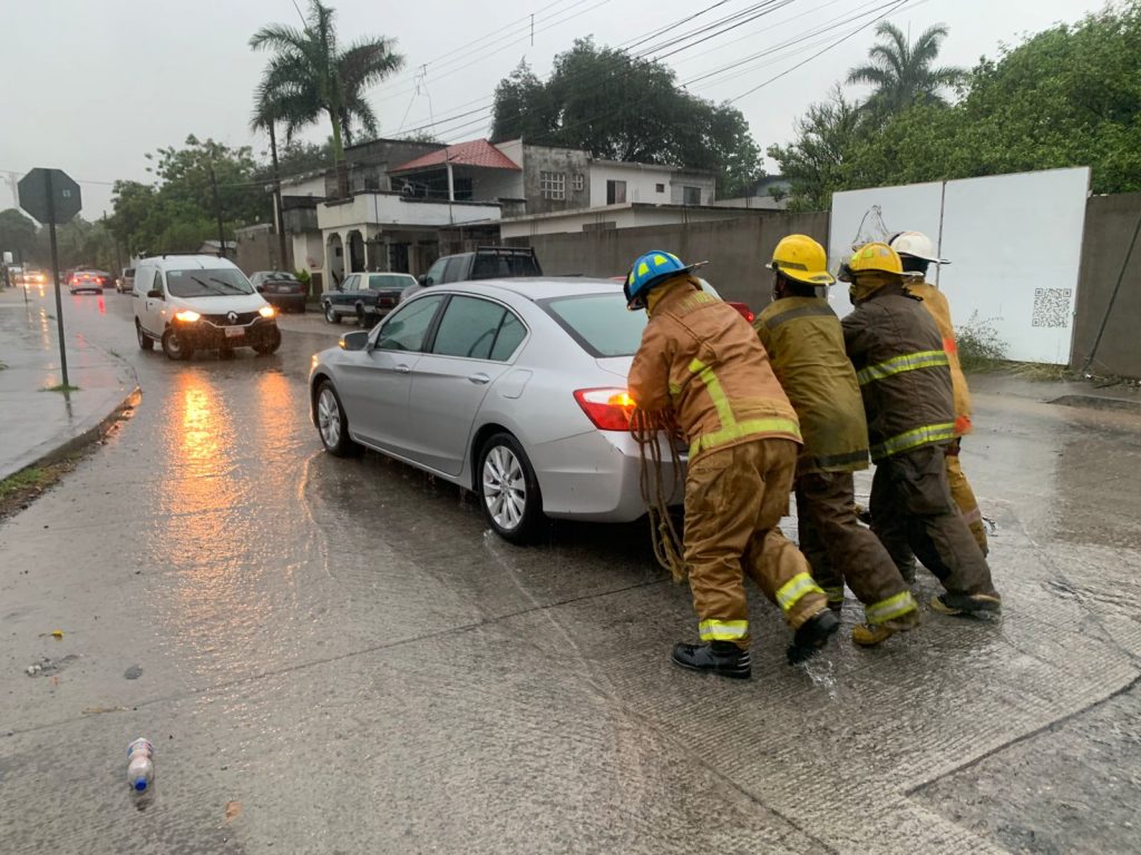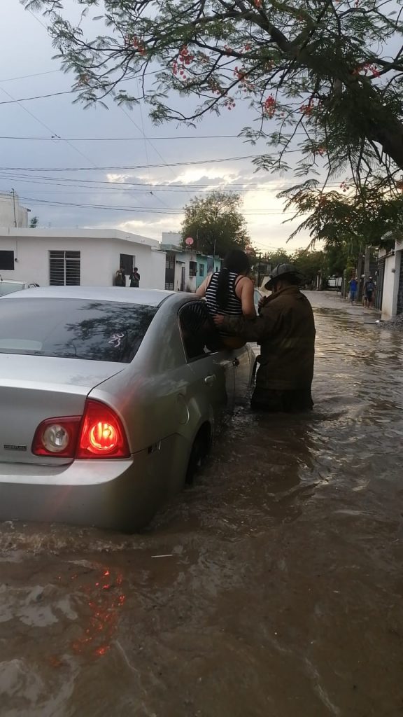 De acuerdo al parte incidencias de PC Municipal, se rescató a 4 adultos y 2 menores de vehículos varados, un motociclista arrastrado por la corriente y se atendió el reporte de personal directivo de las primarias Benito Juárez de la colonia Lázaro Cárdenas y Rosendo Lara del Ejido Guadalupe Victoria.