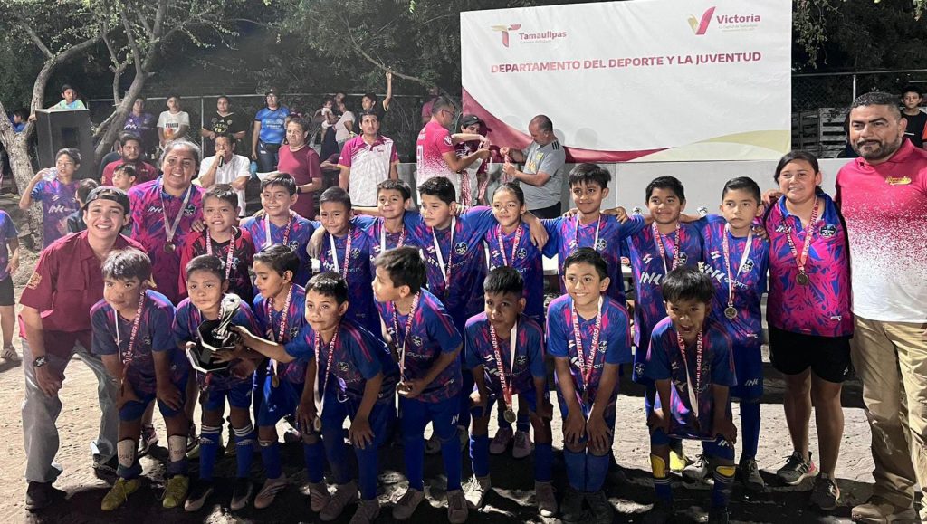 Cd. Victoria, mayo de 2025. – En representación del alcalde Eduardo Abraham Gattás Báez, el Delegado del Instituto Victorense de la Juventud (IVJUVE), Abraham Gattás Rodríguez y Carlos Pizaña jefe del Deporte local, encabezaron la premiación a los campeones de la primera edición del torneo de fútbol infantil y juvenil Copa Victoria Municipal 2025.