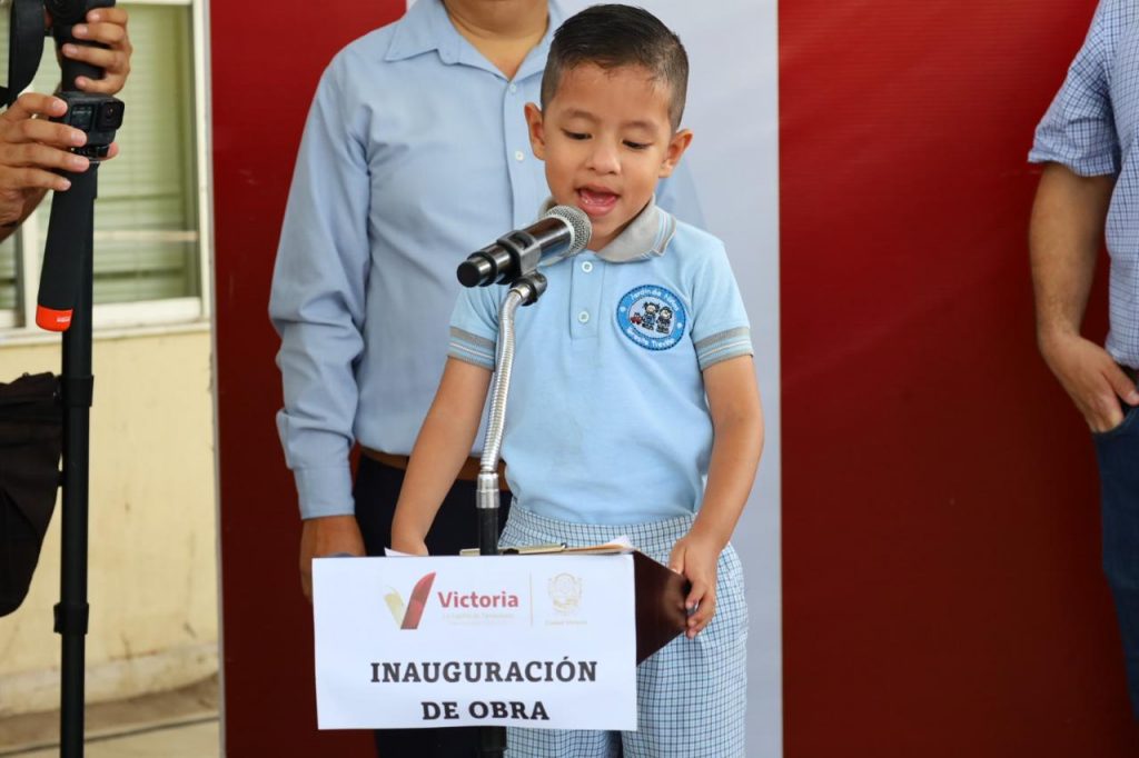 “Es una obra que representa muchas horas de aprendizaje”, dijo el alumno Alejandro Atzin Yeverino al reconocer, junto a su compañera Dara Sánchez Lucas, en nombre de alumnos y personal docente el compromiso de la autoridad municipal con la educación de la niñez victorense.