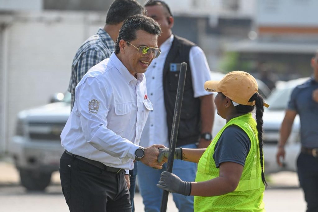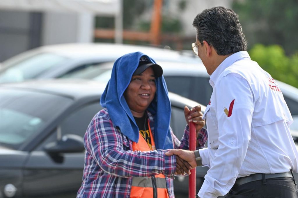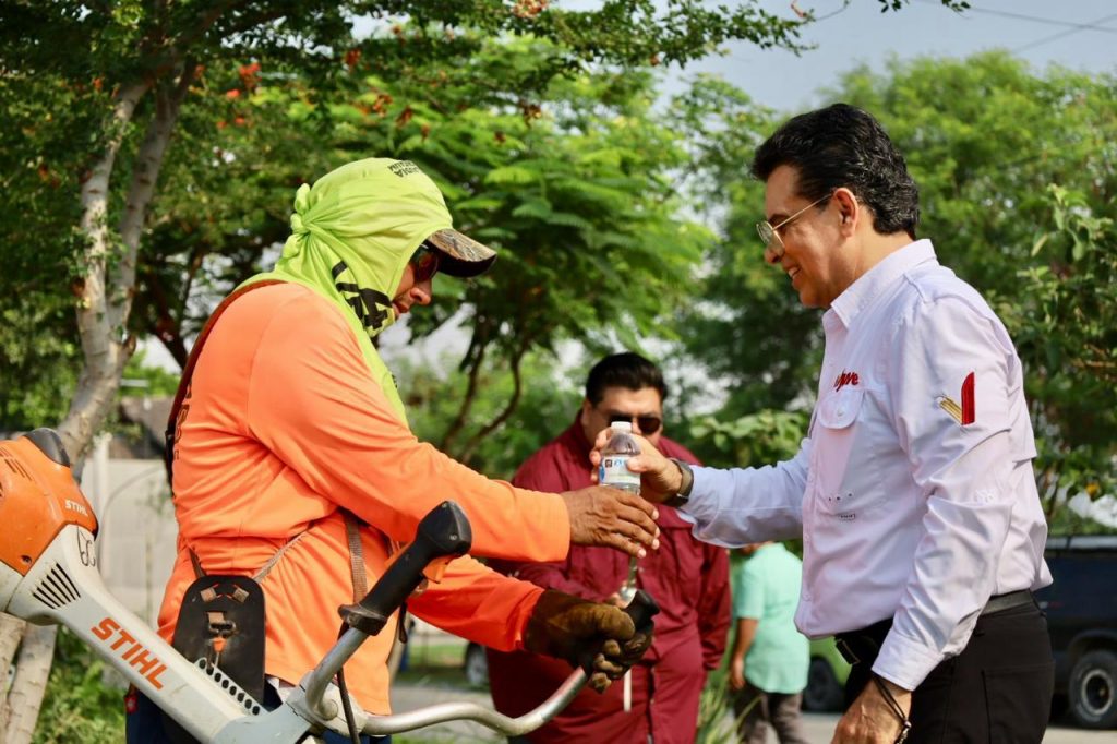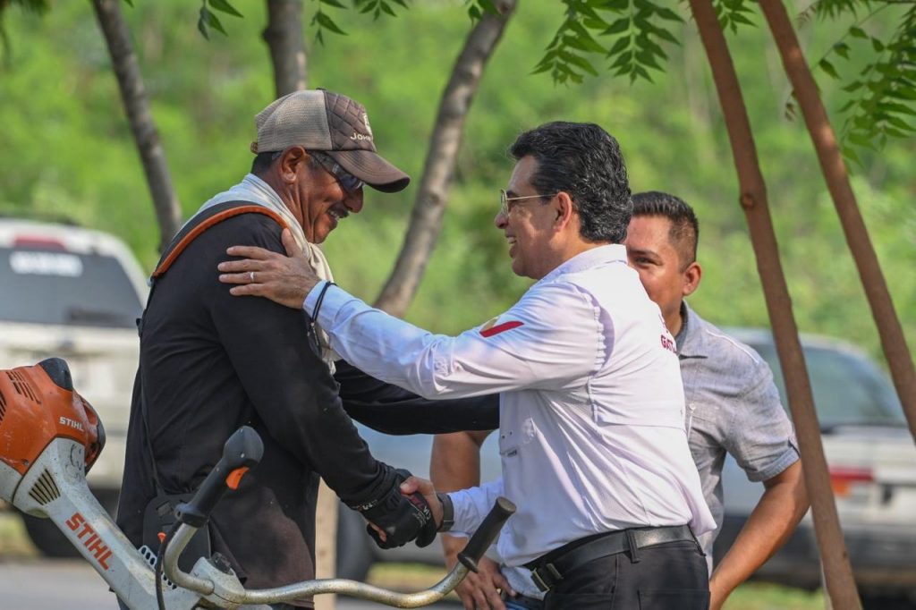 En compañía del secretario de Servicios Públicos, acudió a la avenida Hombres Ilustres para agradecer al personal de Parques y Jardines el esfuerzo que realiza en la mejora y conservación de espacios de recreación y esparcimiento.