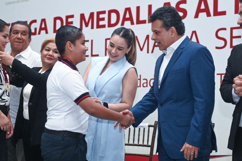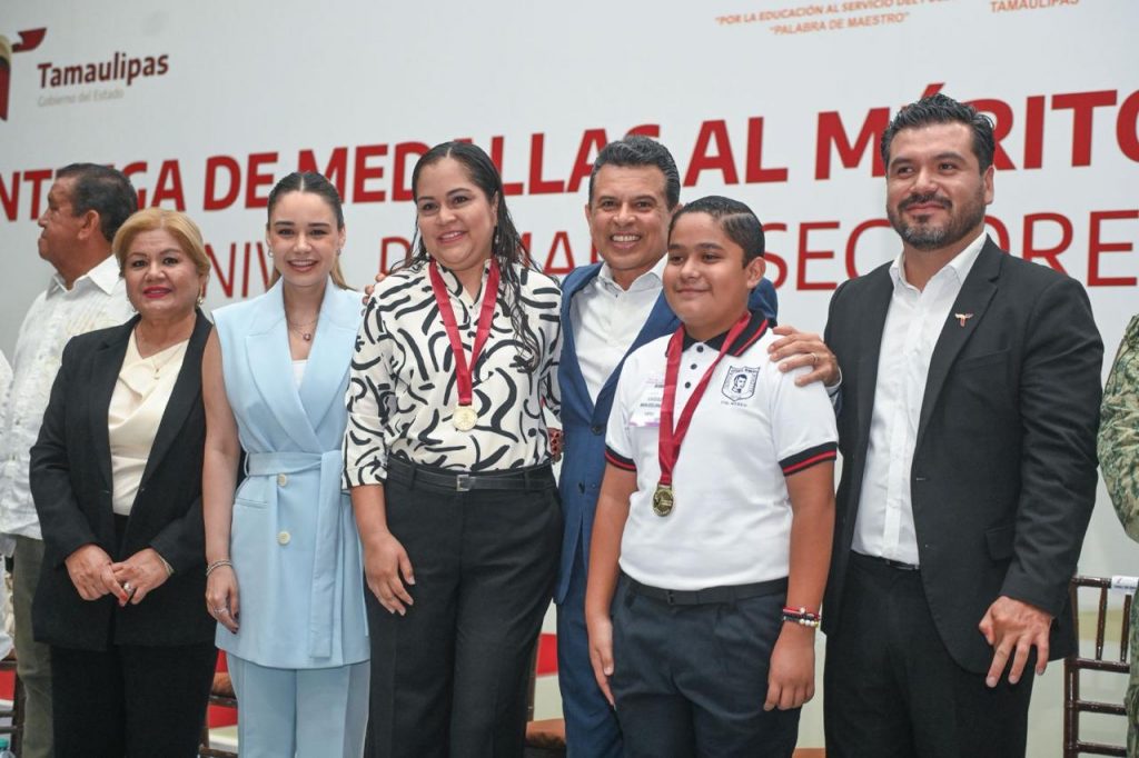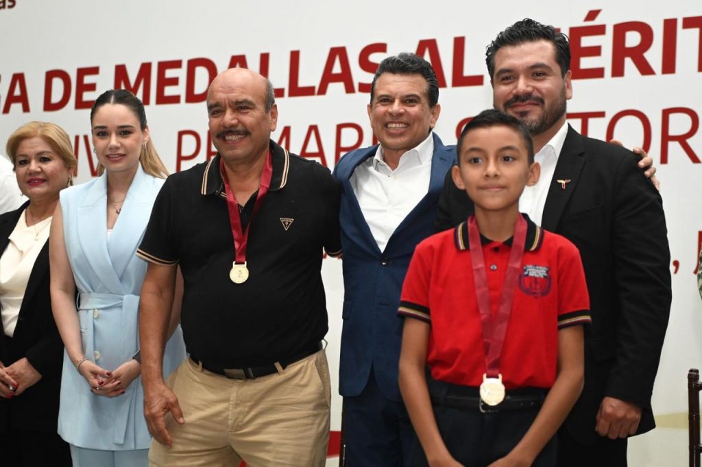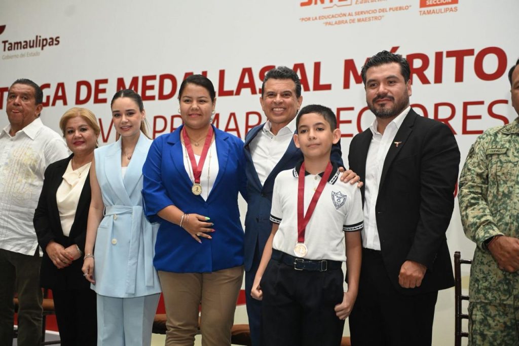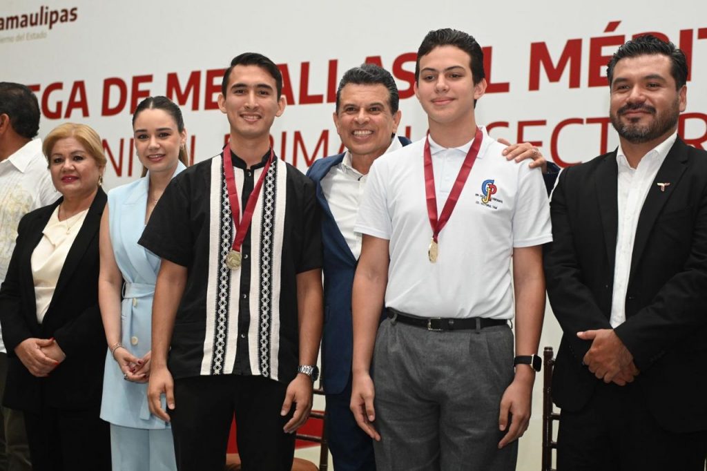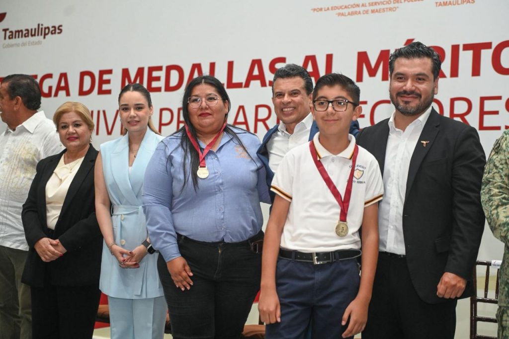 Cd. Victoria, 6 de junio 2025. – El presidente municipal Eduardo Gattás Báez y su esposa Lucy de Gattás, impusieron la medalla al mérito Guadalupe Victoria que otorga el Gobierno Municipal a 163 alumnos de nivel primaria que, con dedicación y constancia, alcanzaron la excelencia educativa.