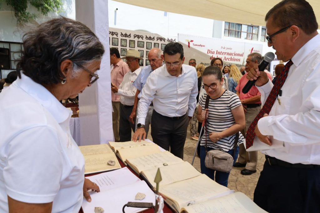 Cd. Victoria,9 de junio 2025 .- En el marco del Día Internacional de los Archivos, el presidente municipal de Victoria Eduardo Gattás Báez tomó la protesta e instaló el Consejo Consultivo del Archivo General del Gobierno Municipal de Victoria, acervo histórico que cuenta con más de 58 mil documentos digitalizados.