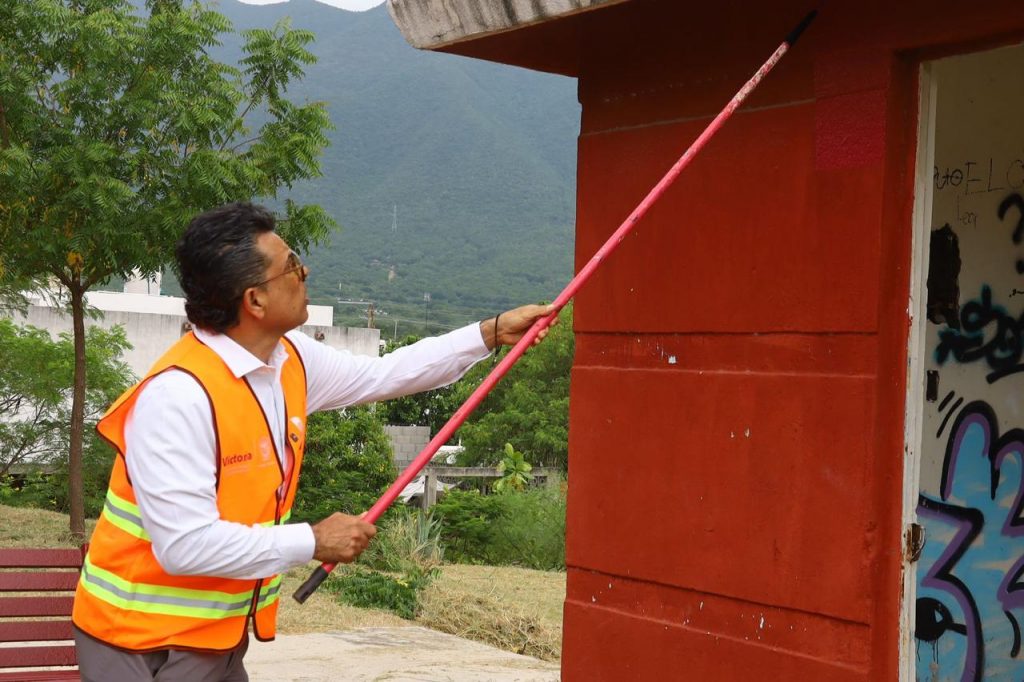Cd. Victoria, 7 de agosto de 2025.- Para fortalecer la convivencia familiar y vecinal, el presidente municipal de Victoria Eduardo Gattás Báez visitó este día, con personal de Servicios Públicos del Municipio, la Colonia Lomas de Santander para rescatar el área verde que por años permaneció en el abandono.