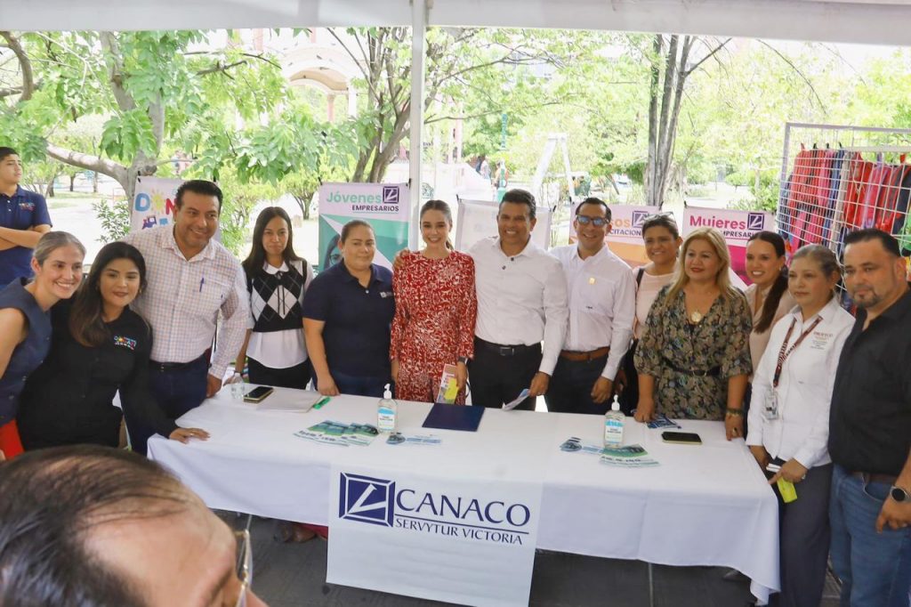 Cd. Victoria, 15 agosto 2025. – Con una amplia exhibición de mochilas, útiles escolares, uniformes, equipos de cómputo, calzado y lentes, dio inicio la Feria de Regreso a Clases 2025, que organiza en apoyo a la economía familiar de 122 mil alumnos el Gobierno de Victoria, CANACO local, gobierno del Estado y Federal.