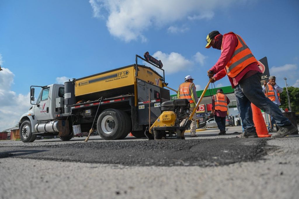 Cd. Victoria, 14 de octubre 2025. – Con acciones concretas para mejorar la vialidad y entorno urbano de la ciudad, el gobierno de Victoria intensificó este martes trabajos de rehabilitación de carpeta asfáltica, chapoleo y poda en camellones de avenidas con mayor flujo vehicular.