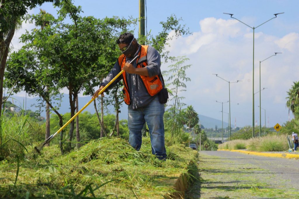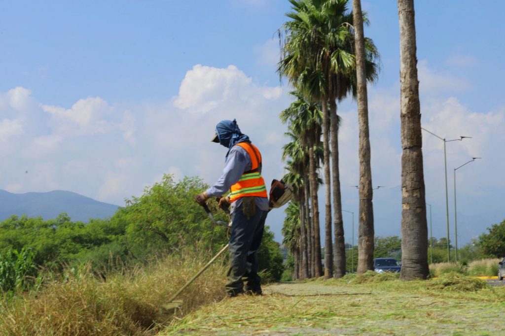 El complemento de acciones, estuvo a cargo de la Secretaría de Servicios Públicos con trabajos de chapoleo y retiro de basura en camellones centrales y laterales del boulevard Práxedis Balboa, avenida Águila Azteca, sector de la colonia Moderna y en torno al Parque Bicentenario.
