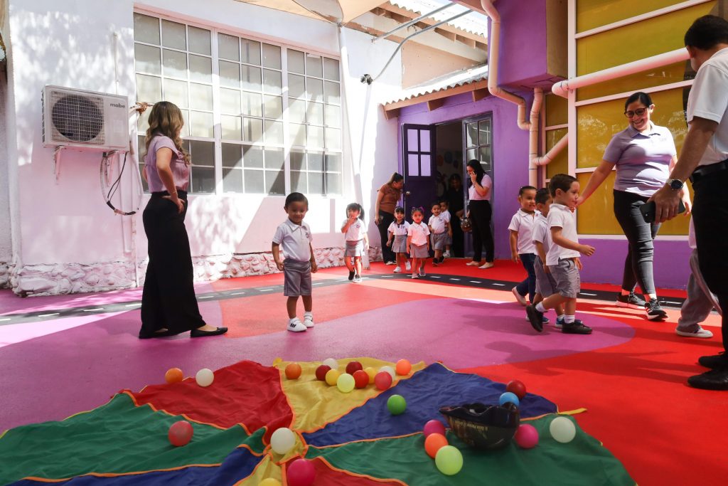 Durante la entrega, la presidenta destacó que el juego es una parte fundamental en el crecimiento físico y emocional de la niñez, y que contar con áreas adecuadas fomenta su creatividad, convivencia y bienestar.