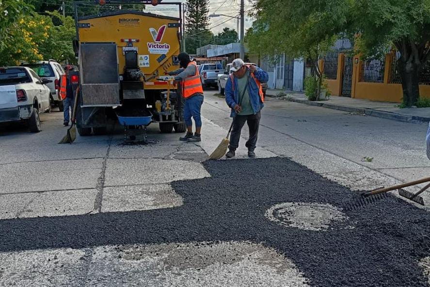 Cd. Victoria, 17 de octubre 2025. – Con el despliegue de más cuadrillas y maquinaría, el gobierno de Victoria, a través de la Secretaría de Obras Públicas y empresas privadas, llegó a siete colonias de la ciudad con el Plan Emergente de Bacheo.