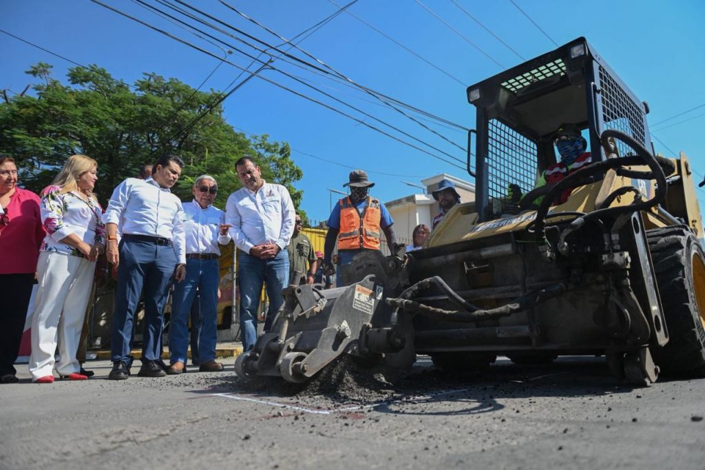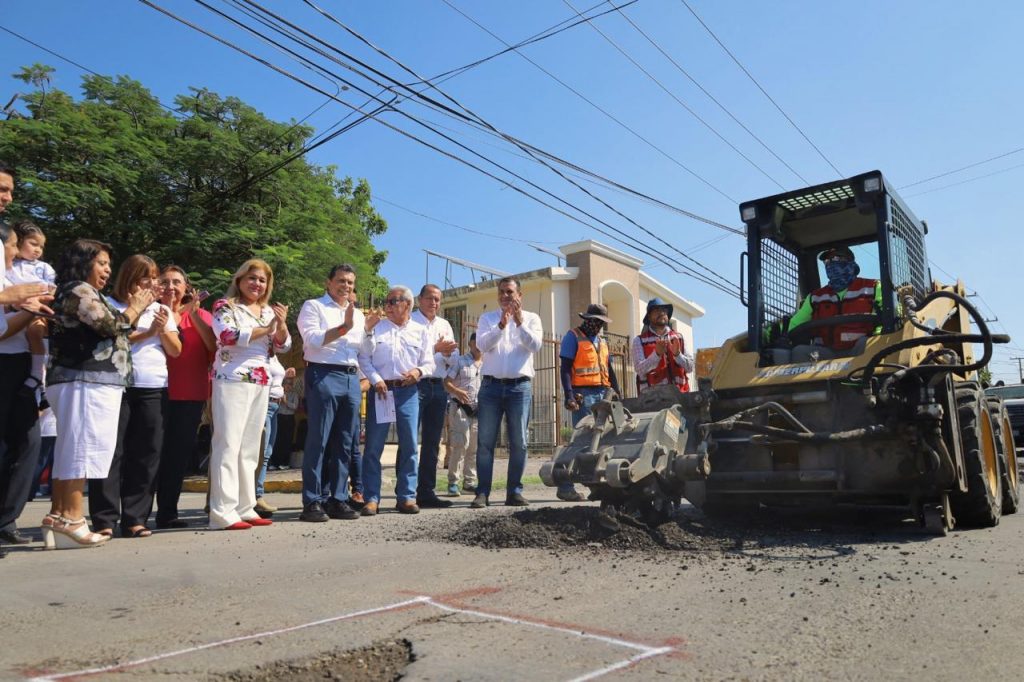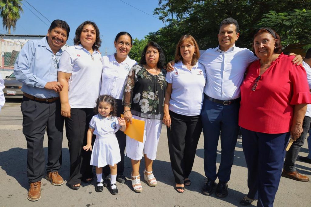 Directivos del Jardín de Niños “Ma. Teresa Treviño García”, primaria República de Chile, supervisión Zona 1 Sector 2 de Preescolar y Sección 30 del SNTE, acompañaron al alcalde Eduardo Gattás Báez al inicio de la rehabilitación de asfalto dañado por las lluvias.