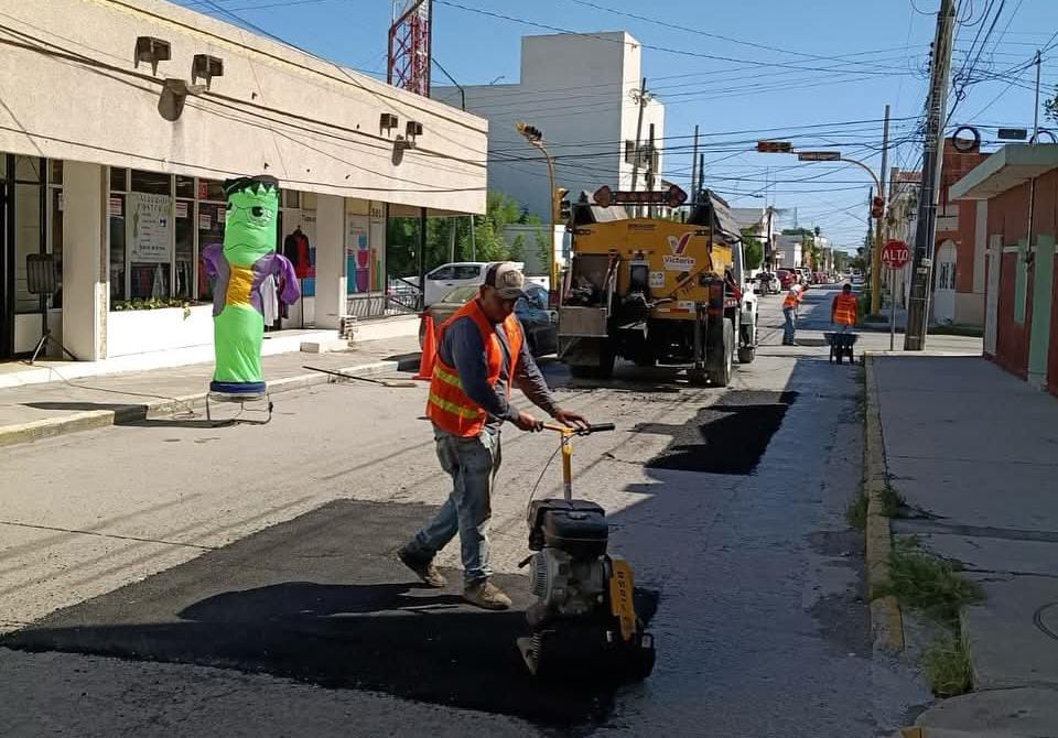 Cd. Victoria, 31 de octubre 2025. – Mediante un sistema de relevo de cuadrillas para cubrir de forma eficiente la jornada laboral diaria, la secretaría de Obras Públicas del Municipio continúa restaurando carpeta asfáltica con el Plan Emergente de Bacheo en la ciudad.