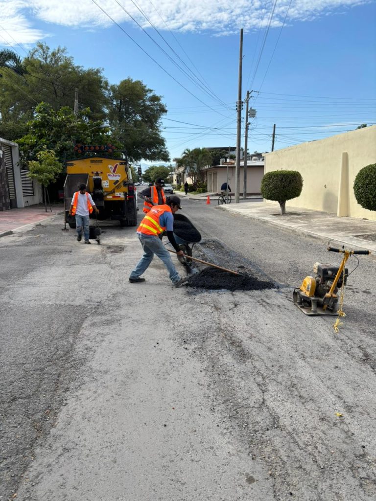 Cd. Victoria, 2 de noviembre 2025. – Cuadrillas de bacheo del Municipio, llevaron a cabo este fin de semana trabajos de rehabilitación de pavimento dañado en calle Norberto Treviño Zapata, entre libramiento Naciones Unidas y San Juan Bautista, de Privadas La Salle y calle Mariano Matamoros de la zona centro.