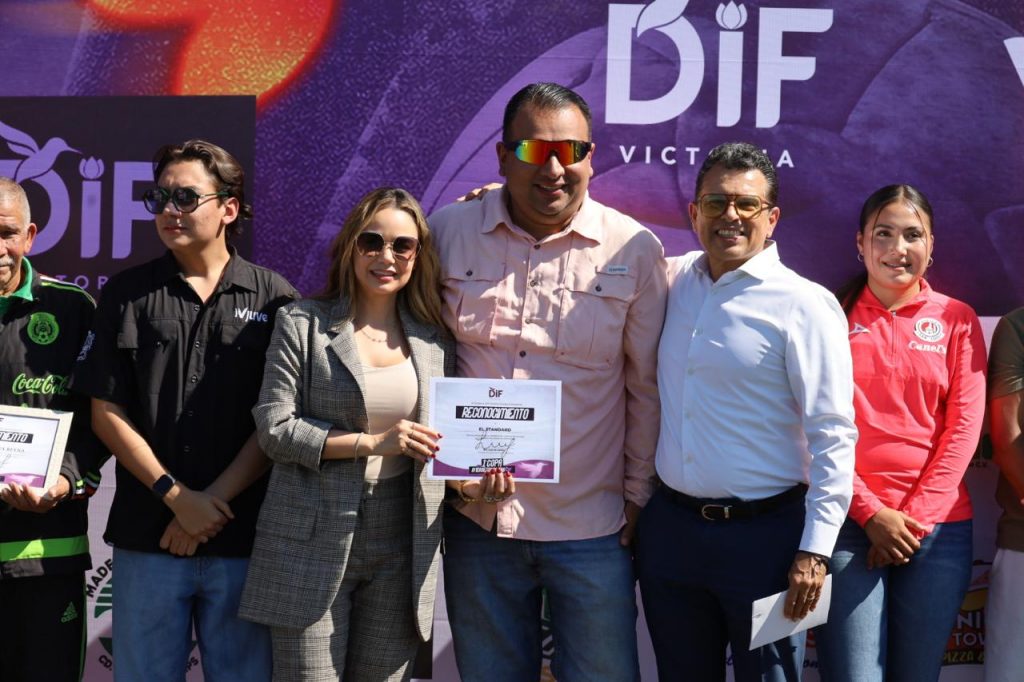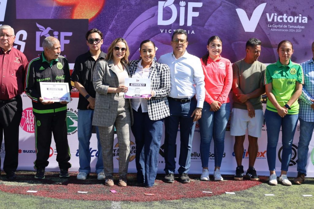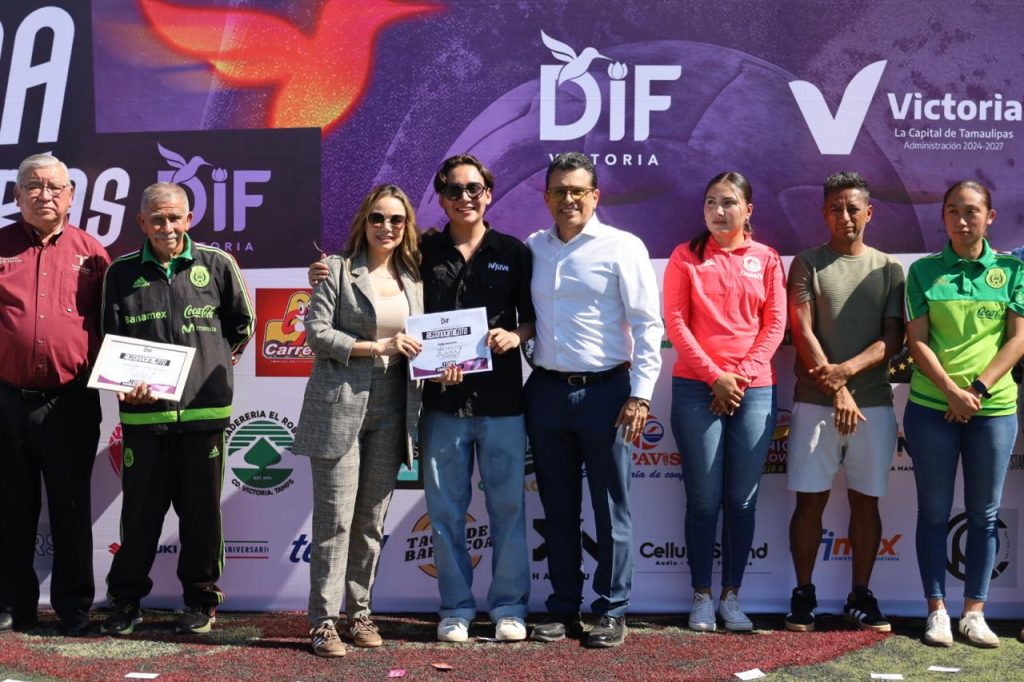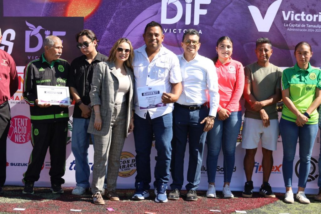 La presidenta del Sistema DIF, Lucy de Gattás, y el alcalde de Victoria, Eduardo Gattás Báez, presidieron la ceremonia de clausura en la cancha Enrique Borja, donde entregaron premio de primer lugar a los equipos, femenil y varonil, de la Secundaria Rafael Ramírez.