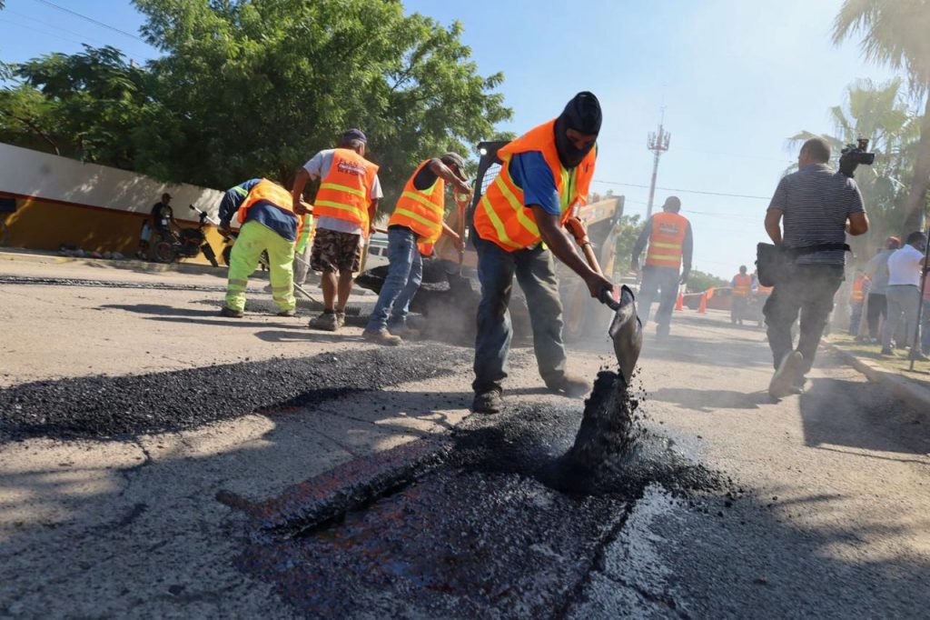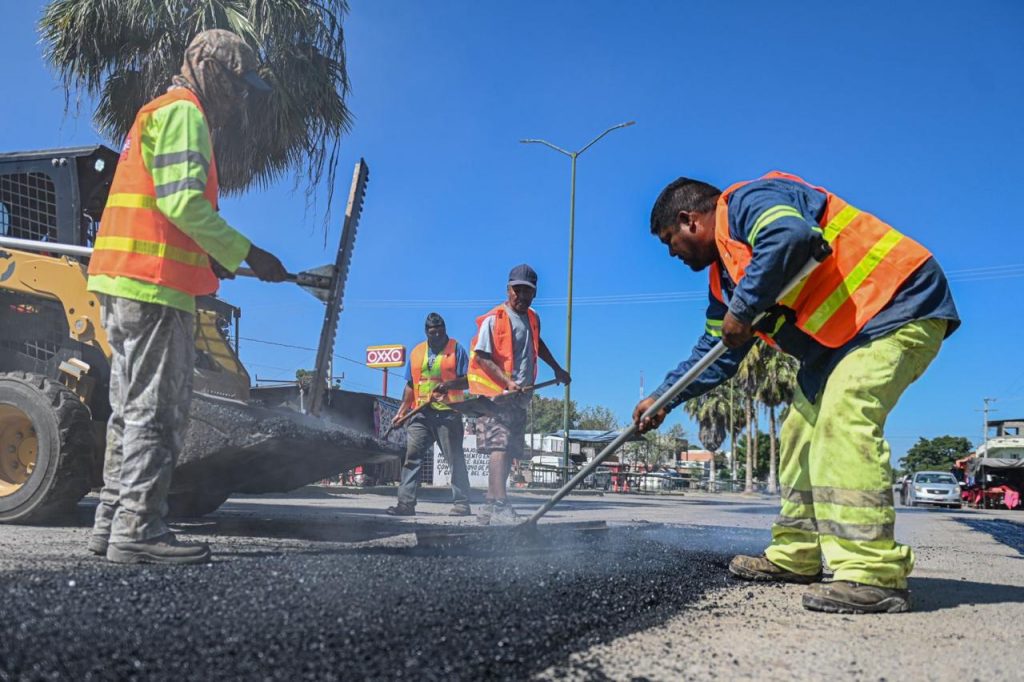 Los trabajos de restauración de pavimento dañado se realizaron del boulevard Práxedis Balboa a calle 16 de septiembre, donde las recientes lluvias y constante tráfico vehicular ocasionaron grave daño en la superficie de rodamiento en ambos sentidos de la avenida.