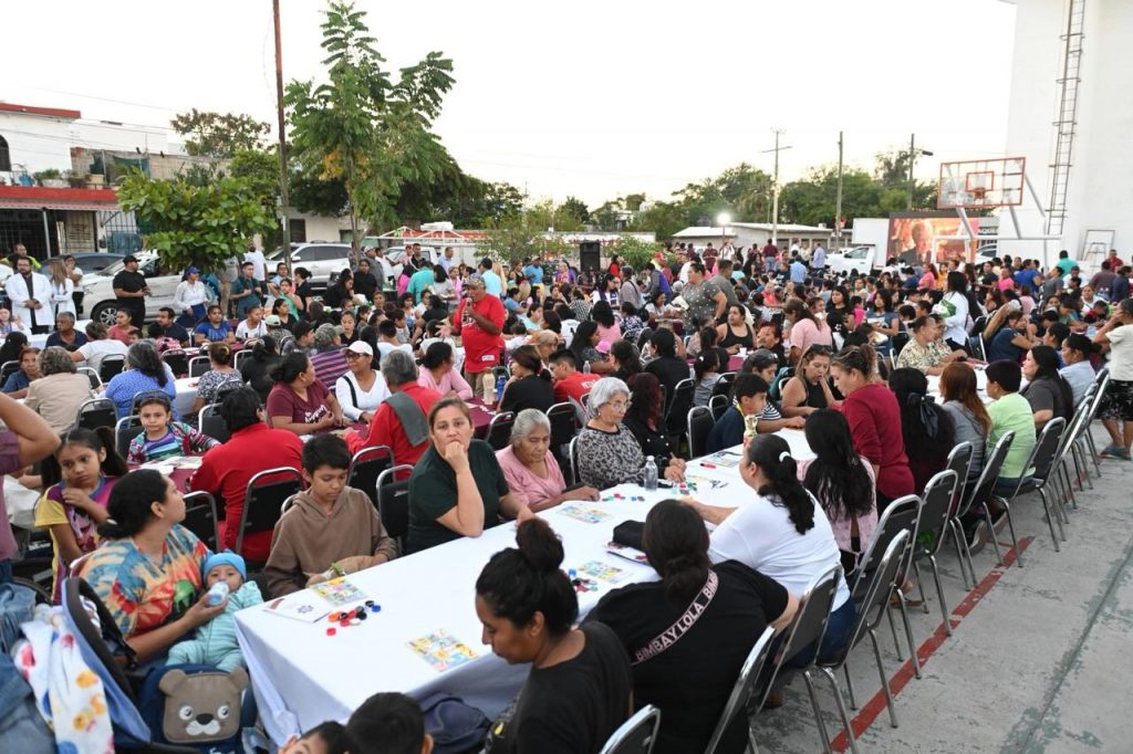 Con el Gabinete Municipal, regidores y representantes de los gobiernos estatal y federal, llegó al área verde del sector a encabezar la verbena popular con refrigerio, lotería, función de cine, beneficios en trámites de predial, agua potable y productos de la canasta básica a bajo costo.