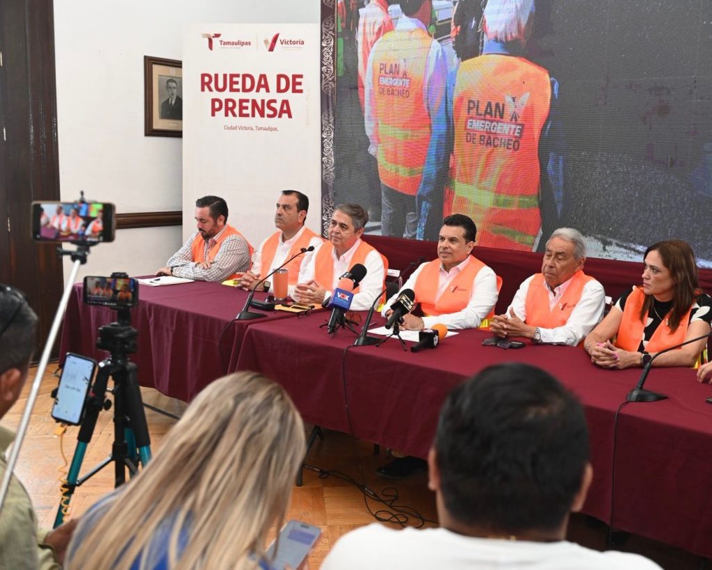 Cd. Victoria, 18 de noviembre de 2025. – El Plan Emergente de Bacheo arrancará esta semana en rutas de transporte público de las colonias Tamatán, Viento Huasteco y ejidos La Presa y La Misión, anunció este martes en conferencia de prensa el equipo logístico encabezado por el alcalde de Victoria Eduardo Gattás Báez.