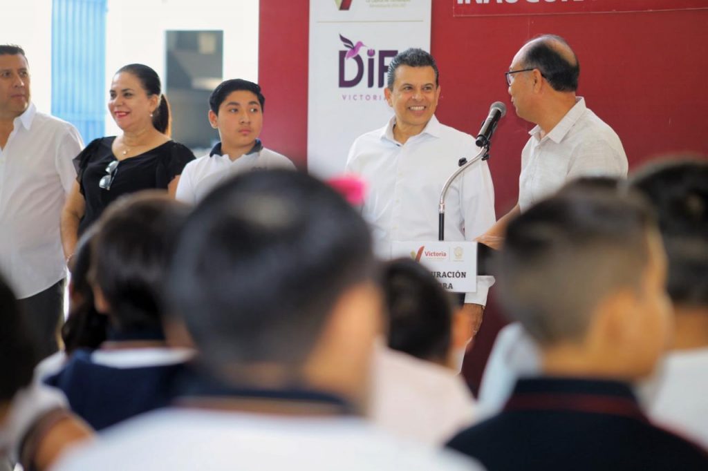 Durante el Gobierno de Eduardo Gattás Báez alumnas y alumnos de 16 escuelas de Victoria realizan sus actividades sin sufrir las inclemencias del clima; un beneficio que, como anunció el gobernante que escucha y atiende, continuará siendo prioritario en el 2026.