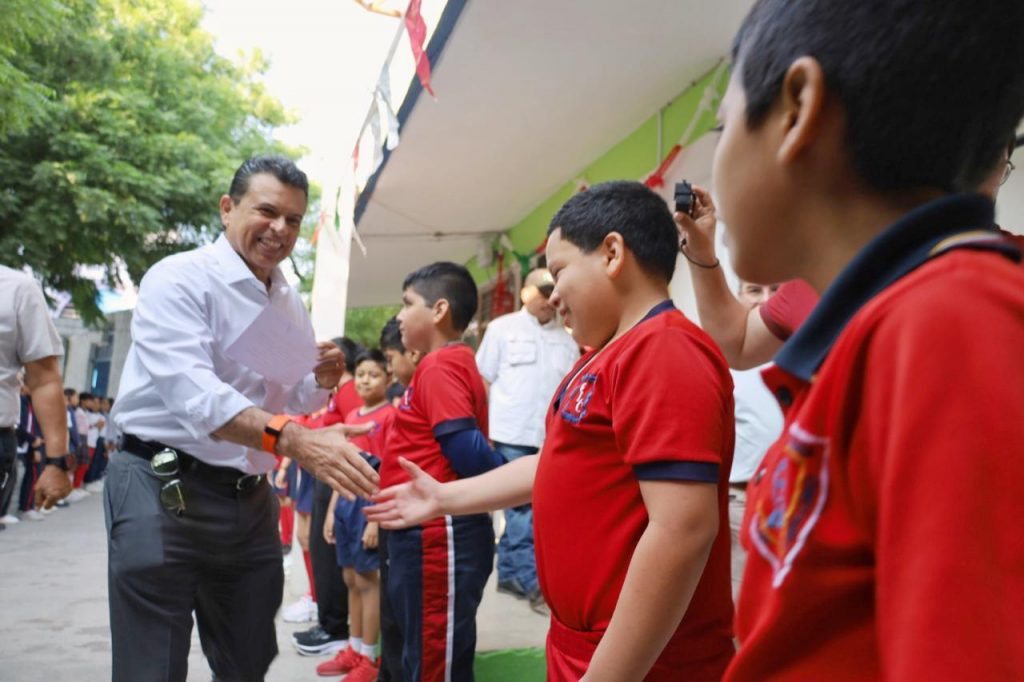 Cd. Victoria, 19 de noviembre 2025. – El alcalde Eduardo Gattás Báez entregó en la escuela primaria “General Luis Caballero”, la techumbre metálica número 16 que construye su gobierno en instituciones educativas para actividades cívicas, físicas y culturales de niñas y niños.