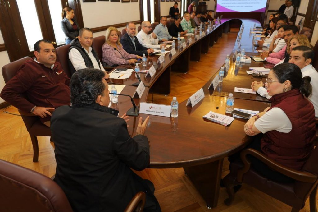 Reunidos en la sala de Cabildo en la Mesa de Bienestar se expusieron los programas asistenciales y las políticas públicas que influyen en temas de salud, educación, seguridad, alimentación y desarrollo comunitario, integrándose a la agenda el INSABI, la SADER, Secretaría de Gobernación y la Secretaría de Desarrollo Rural Estatal