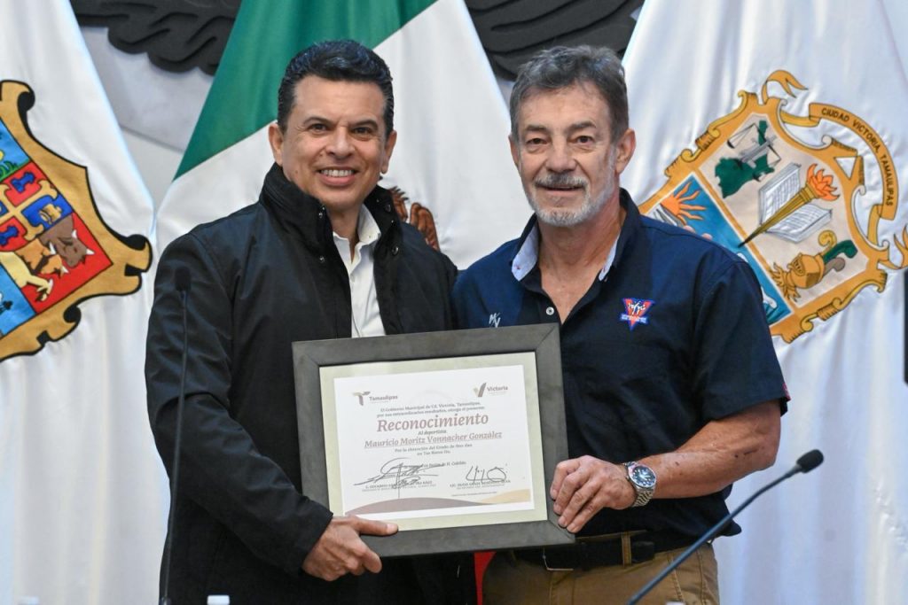 Cd. Victoria, 29 de noviembre 2025. – En nombre del Cabildo de Victoria, el alcalde Eduardo Gattás Báez entregó reconocimiento a Mauricio Moritz Vonnacher, uno de los deportistas victorenses competitivos a nivel mundial que recientemente obtuvo el grado noveno Dan en Tae Kwon.